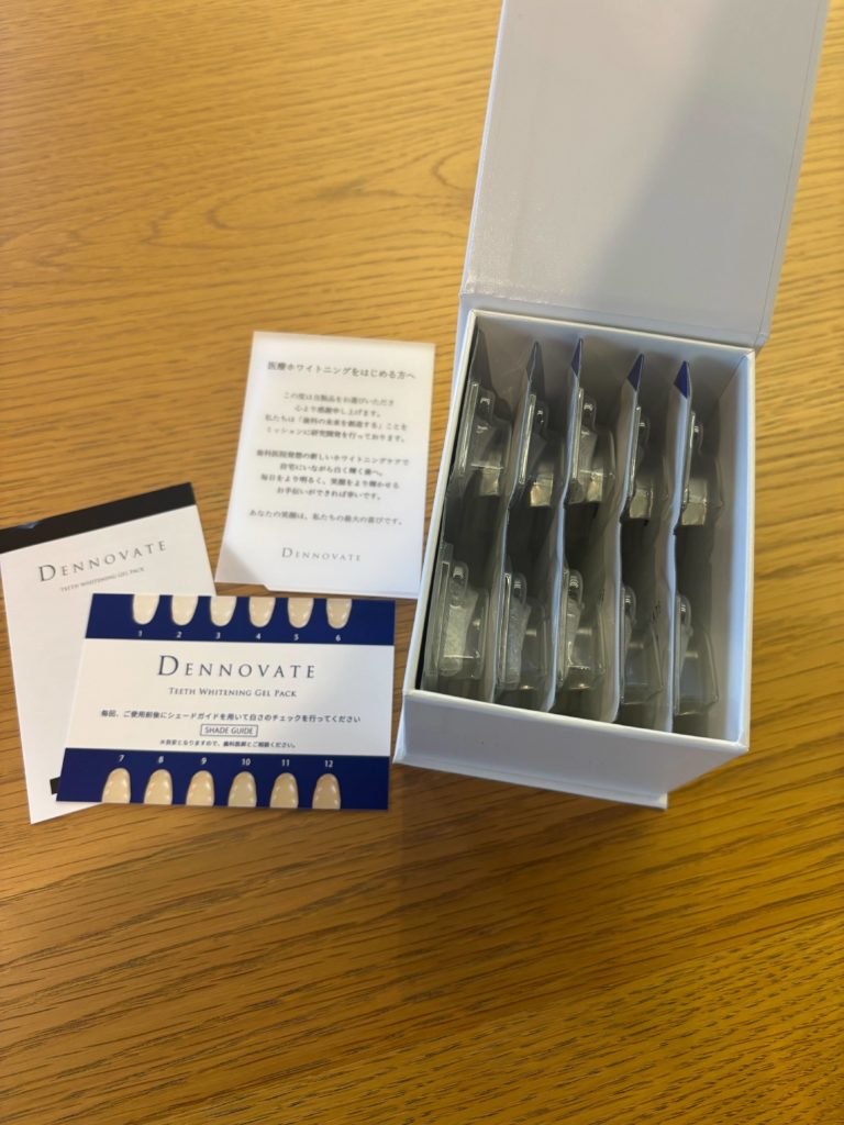 またDENNOVATE(ディノベート)にはキシリトールやペパーミント油が配合されており、ホワイトニング中の不快感の軽減・清涼感にも考慮されています。