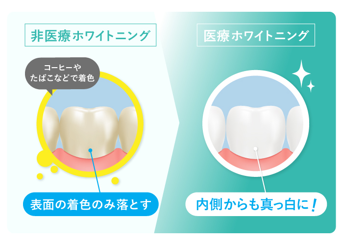 ホワイトニングジェルは歯を痛めずに、色素のみ分解してくれるため、継続的に行うことで深部までホワイトニングが行えます。