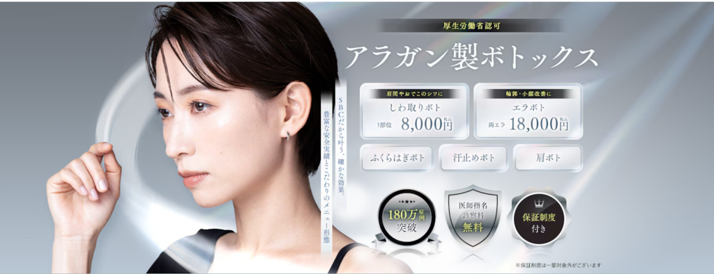 また、豊富な症例数を持つ経験豊富な医師が在籍しているため、高い技術力と安全性が期待できます。 湘南美容クリニックのボトックスは、部位ごとに明確な料金が設定されているため、初めての方でも施術内容や費用を理解しやすいのが特徴です。