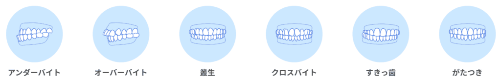 | 叢生(ガタガタ歯・八重歯) | ◯ | ◯ | ◯ | ◯ |